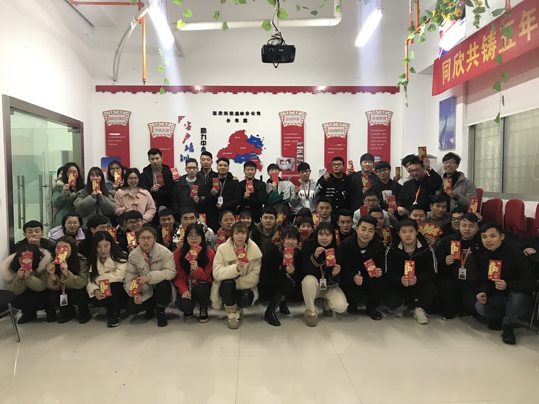 隨后,董事長趙新立先生攜公司股東層為廣大員工送上了新春問候和誠摯的祝福,并給員工派發(fā)了新年慰問紅包,意味著新年好彩頭,紅紅火火,將現(xiàn)場氣氛推向了高潮。
