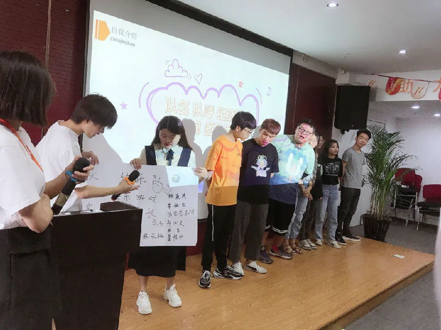 第一天,來自聯欣科技各區域的伙伴們齊聚集團十樓多功能廳。小伙伴們的第一次相聚總有些陌生和拘謹,在班主任的引導下,小伙伴們依次做自我介紹,并通過“背對背”游戲讓氣氛迅速活躍起來。接下來大家開始分小組,想隊名、定口號,隨后上臺展示充分自己團隊風采。