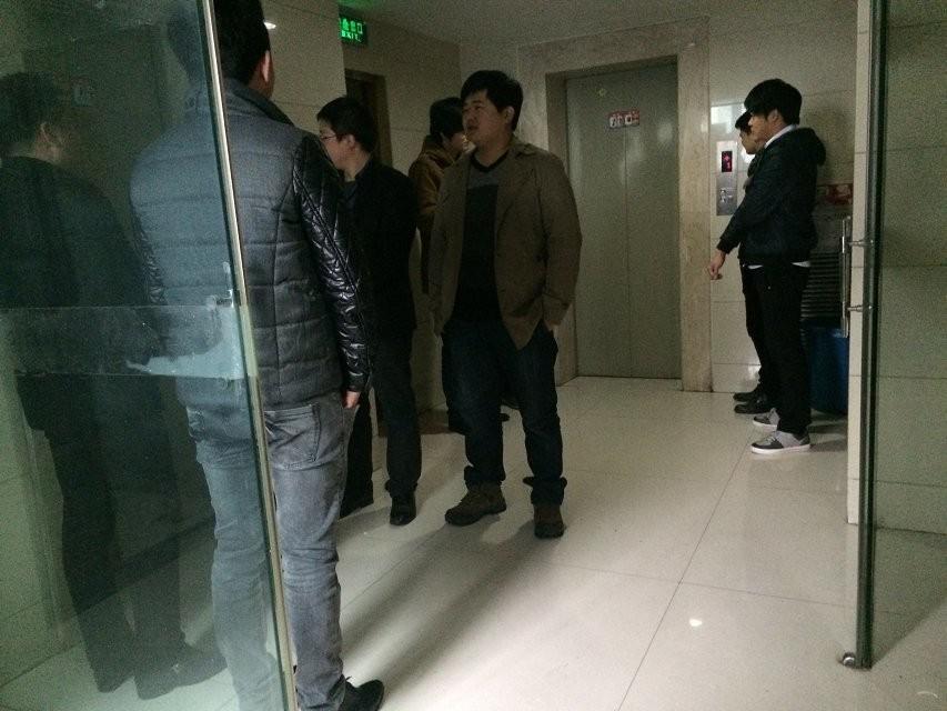 7點40分,聯(lián)欣科技技術部全體爺們已經早早地把守在展宏大廈12樓電梯口排排站。