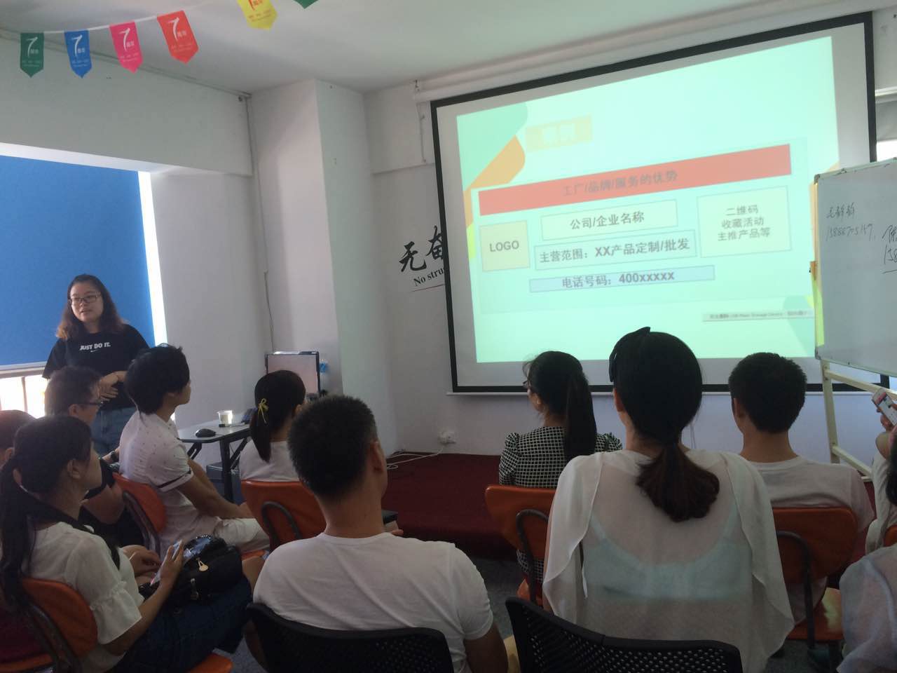 九點一刻教室里就已水泄不通了,時鐘滴答滴答的每一聲似乎在預示著開啟電商之門已在倒計時了。就在這千鈞一發的時候,本期班主任——毛老師自帶霸氣的在眾多人群中有條不紊的開班中。